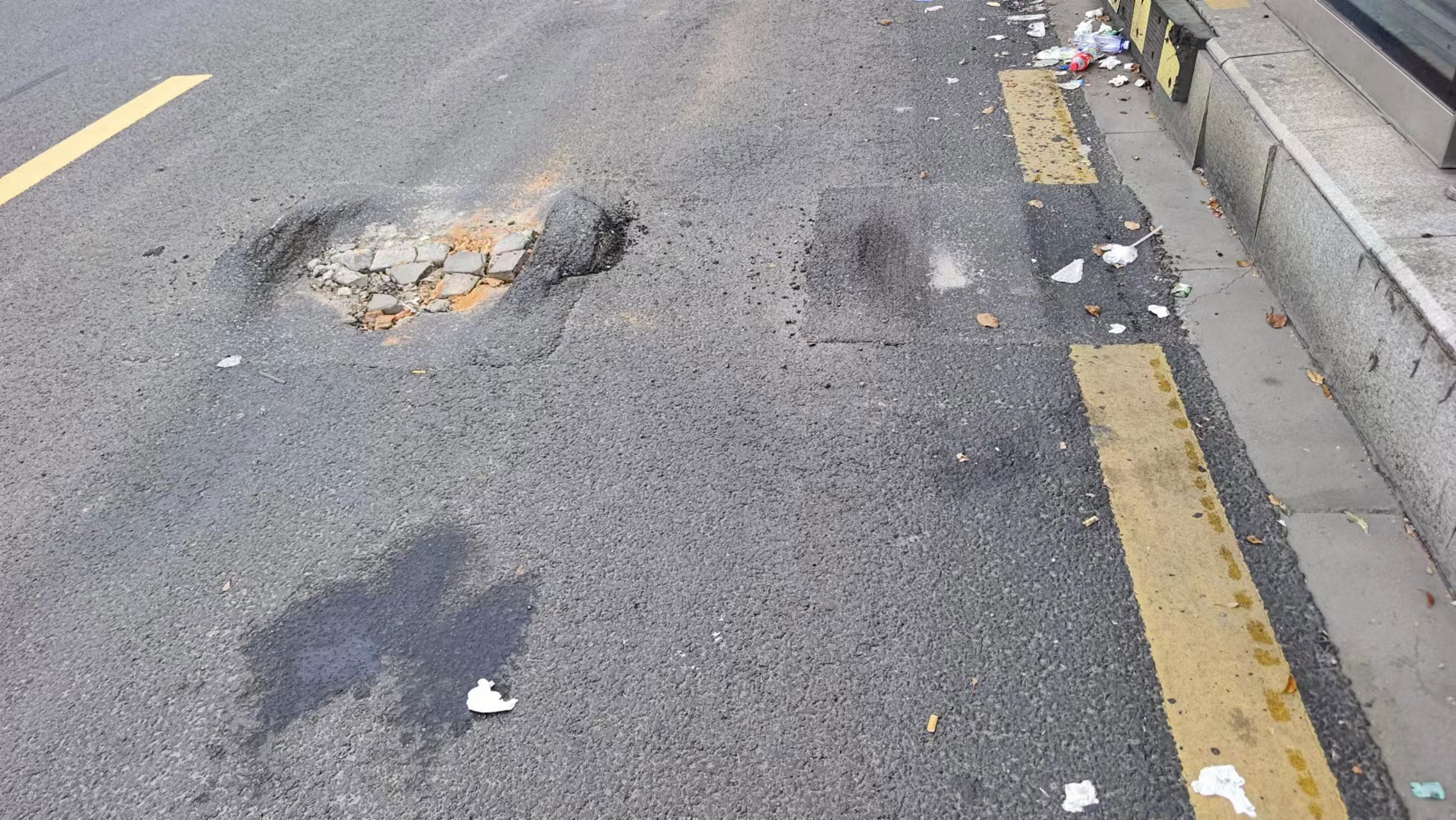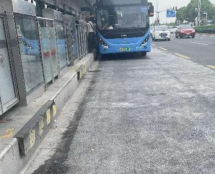 浦星公路沈杜公路BRT车站作为交通枢纽,长期受到BRT客车及其他重型车辆的频繁刹车和启动影响。这种高强度的使用方式导致沥青路面在固定位置上持续出现损坏,需要频繁维修。此外,夏季高温天气加剧了热量集中,进一步恶化了路面的损坏情况,如沥青软化、拥抱推移等病害频发。