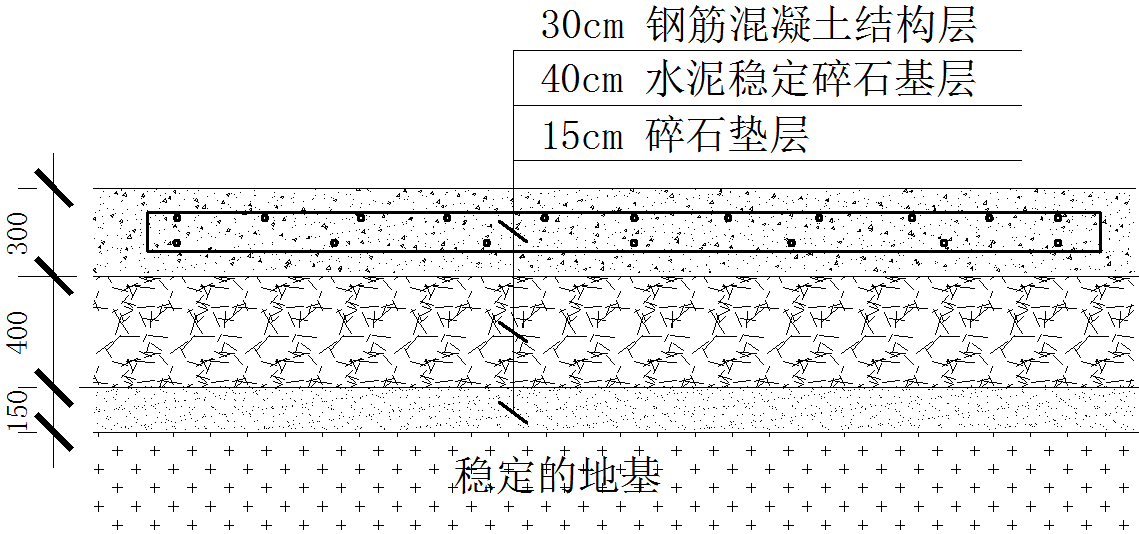 ①原设计道路路基中间层:40cm水泥稳定碎石混凝土