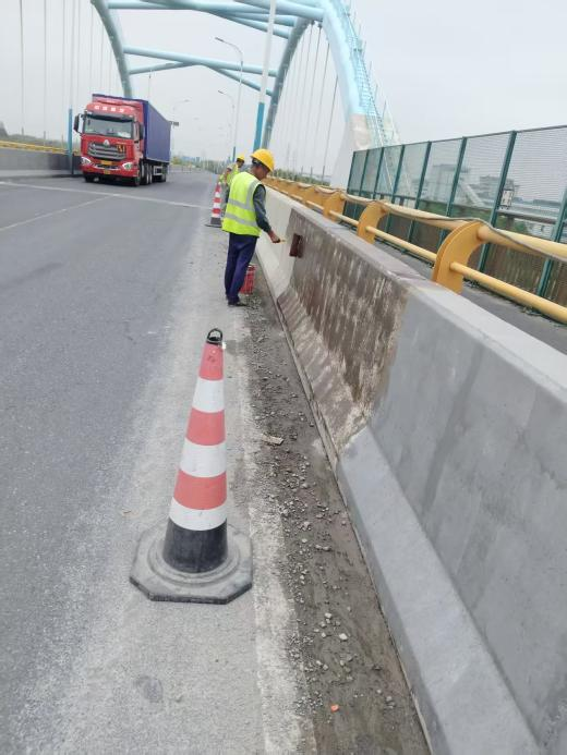 对防撞墙锈蚀的地方,人工凿除,清除浮锈,用锈蚀转换剂涂刷,再用环氧做界面剂,用环氧砂浆修补。